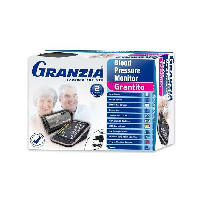 جهاز قياس ضغط الدم جرانزيا Grantito يتميز بتصميمه الأنيق ودقته العالية في قياس ضغط الدم ومعدل ضربات القلب من الذراع العلوية، ويُعد خيارًا مثاليًا للمراقبة المنزلية بفضل سهولة استخدامه ووضوح الشاشة الرقمية الكبيرة.