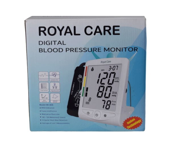 جهاز الضغط الديجيتال رويال كير من رويال كير يوفر قياسات دقيقة وسريعة لضغط الدم ومعدل النبض بلمسة زر واحدة. يتميز بشاشة واضحة وسهلة القراءة وتصميم عملي، مما يجعله خيارًا موثوقًا لمتابعة الحالة الصحية في المنزل أو العيادة.