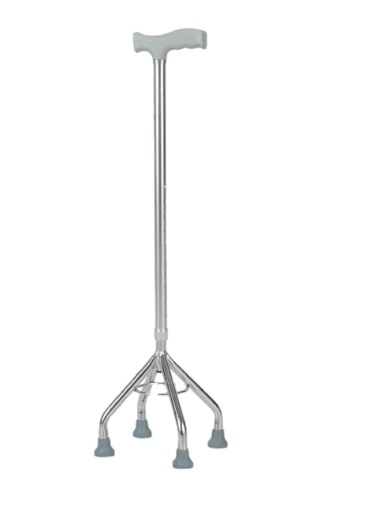 عكاز طبي مزوّد بأربع قواعد لتوفير أقصى درجات الثبات والدعم أثناء المشي.