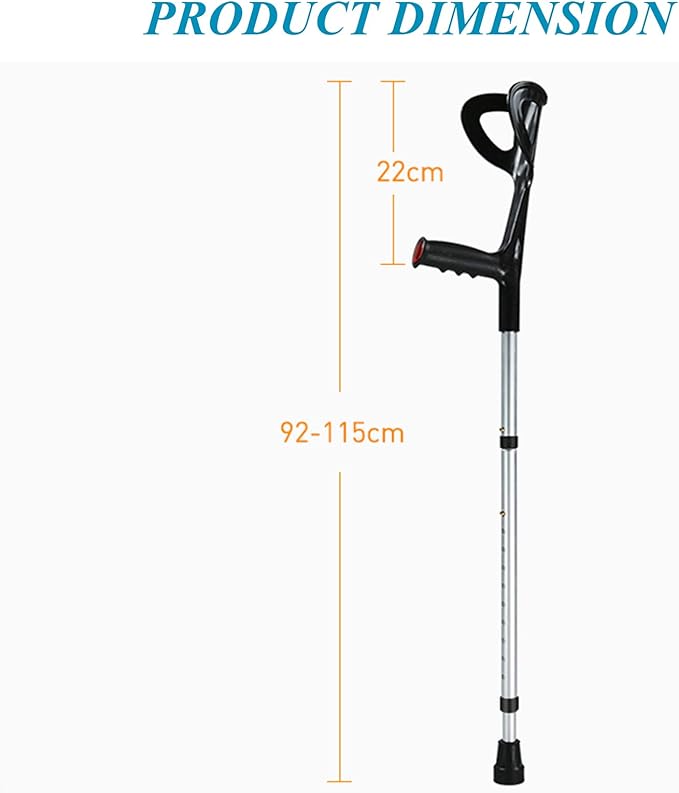 عكاز مرفق ثابت يوفر دعمًا قويًا ومتوازنًا للذراع والساق مع تصميم مريح يسند المرفق لتقليل الضغط أثناء الحركة، مما يجعله مثاليًا لمرحلة التأهيل بعد الإصابات أو العمليات الجراحية.