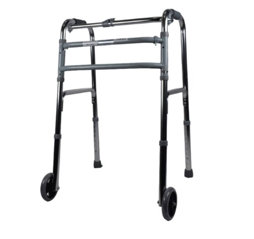 مشاية طبية متحركة مزودة بعجلتين أماميتين مصممة لمساعدة كبار السن وذوي الاحتياجات الخاصة على الحركة بسهولة داخل المنزل وخارجه دون الحاجة إلى رفع المشاية بالكامل.