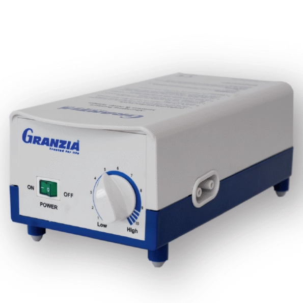 - مضخة ضغط هادئة وسهلة التحكم لتعديل مستوى الهواء حسب احتياج المريض.